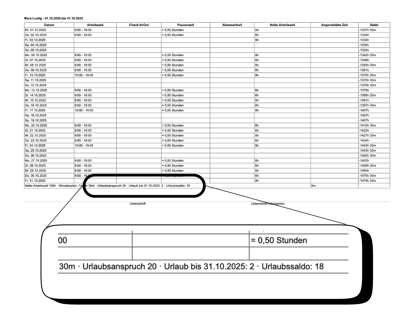 Arbeitszeiterfassung: Urlaubssalden direkt ablesen
